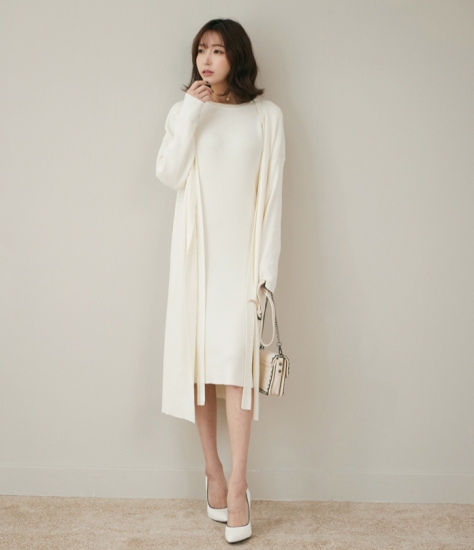 セットアップ カーディガン ニットワンピース セット キャミワンピ カーディガン 長袖 クリーム アイボリー 滑らか フレアワンピース ロング ニットワンピ 春 スプリング ロングワンピ ニット フレアワンピース Jizzax Org